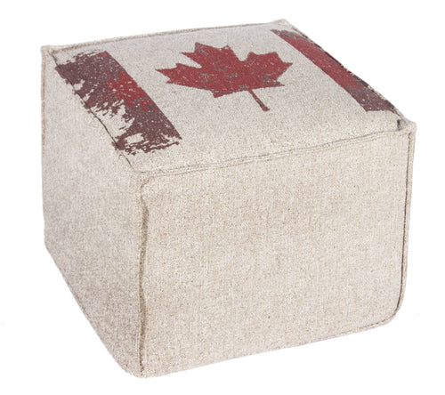 L900F-CANAD 16x16x12" Canada Flag Image Printed on a Textured Fabric on this Footy Ottoman, The Original Printed Design Cover, zips off for laundering and the base is a waterproof scratch resistant Denier Material, part of The Vintage Canadiana Collection