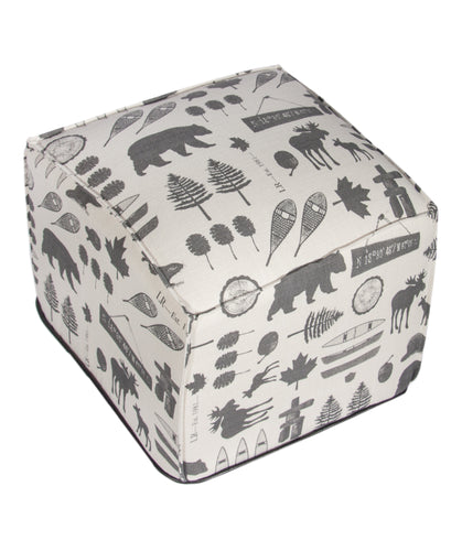 L900F-ICON 16x16x12" Iconic Images Printed on a Linen Blend on this Footy Ottoman, The Original Printed Design Cover, zips off for laundering and the base is a waterproof scratch resistant Denier Material, part of The Vintage Canadiana Collection