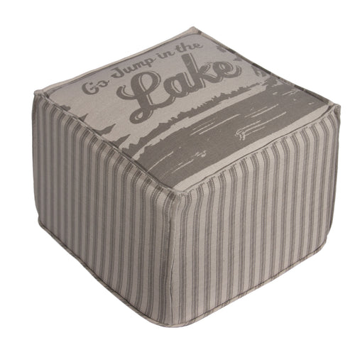 L900F-JUMP 16x16x12" Printed Go Jump In the Lake with Ticking Stripe Footy Ottoman on Linen Blend part of The Lake House Collection
