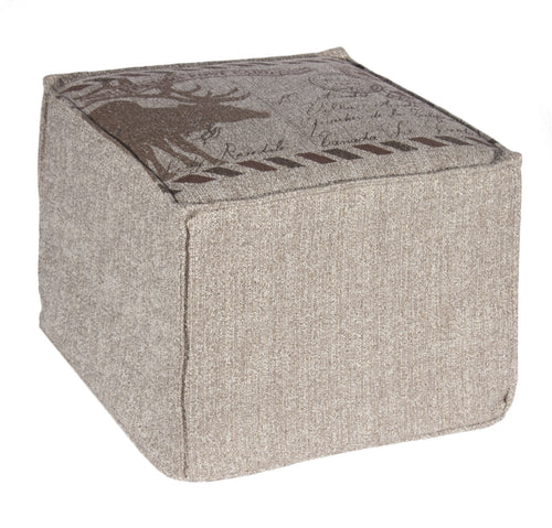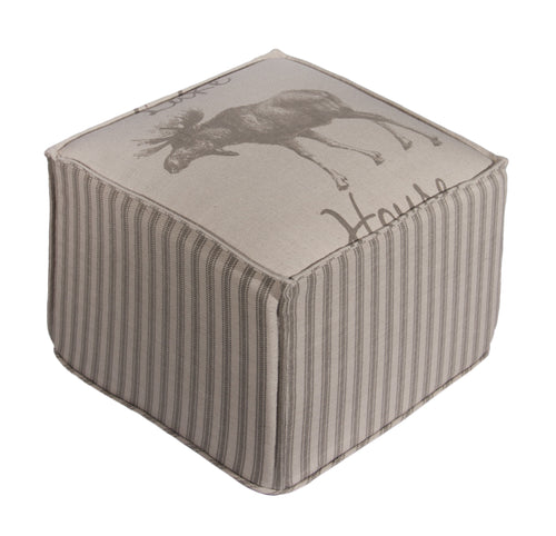 L900F-LHSE 16x16x12" Printed Moose with Lake House and Ticking Stripe Footy Ottoman on Linen Blend