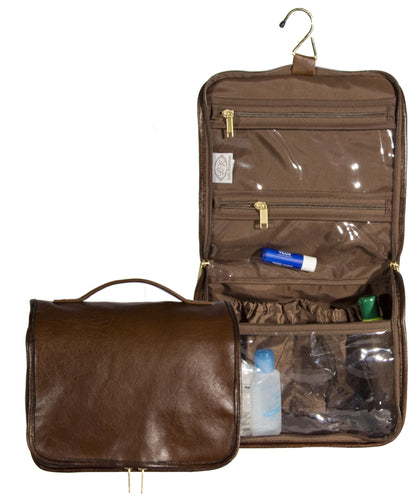 L955-12 Ultimate Hangup Authentic Brown Leather, Comes with Hanger and double Zipper for easy travelling and to keep everything contained. Part of the Cosmetic and Travel Collection 10.5"x17"x4"