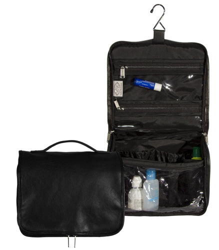 L955-13 Ultimate Hangup Authentic Black Leather, Comes with Hanger and double Zipper for easy travelling and to keep everything contained. Part of the Cosmetic and Travel Collection 10.5"x17"x4"