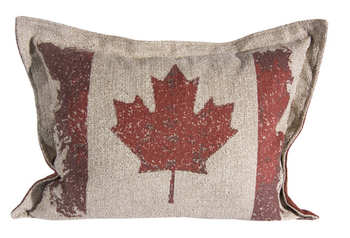 L960-CANAD 16"x22" Pillow with Zippered Feather Insert the Vintage Canada Flag printed image with a Flanged edge part of the Lady Rosedale Vintage Canadiana Collection
