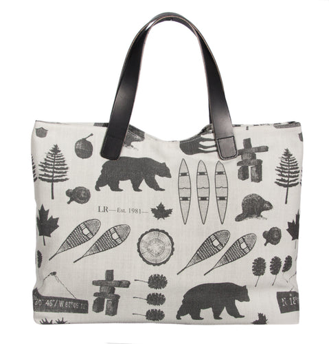 L994-ICON Traveller Tote 18"x14"x5.5" with Bridle Leather straps, magnetic snap closure, interior pockets, lined in a durable waterproof denier nylon part of the Vintage Canadiana Collection